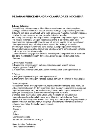 Dalam perkembangan selanjutnya, bidang olahraga mulai mengharumkan nama bangsa indonesia melalui cabang olahraga bulutangkis. Kode & nama mata kuliah : Pada saat masa penjajahan dan kemerdekaan. Pada masa orde baru dengan dengan panji "memasyarakatkan olahraga dan mengolahragakan masyarakat" dapat . Dalam perkembangannya kedua istilah ini .